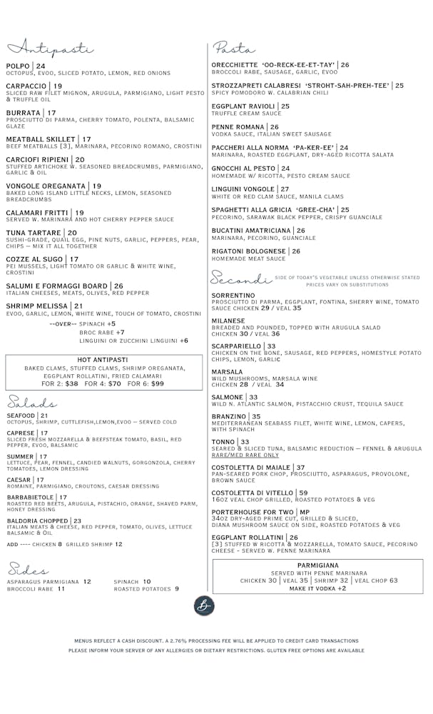 Baked & stuffed clams, shrimp, eggplant rollatini, fried calamari